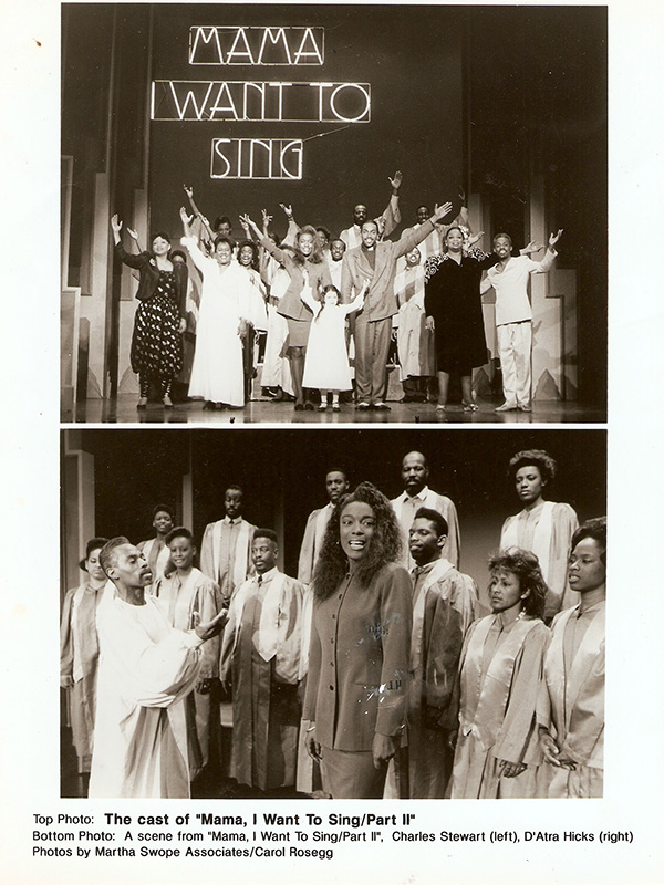 MAMA I WANT TO SING as a member of the Ensemble – 1989 Off-Broadway, 1990 Amerika-Tournee, 1992 Europa-Tournee